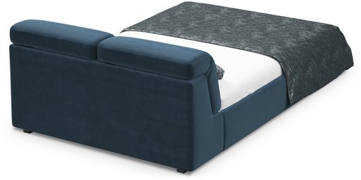 Обратная сторона изголовья, обитая тканью, позволяет ставить кровать в центре комнаты и зонировать пространство.