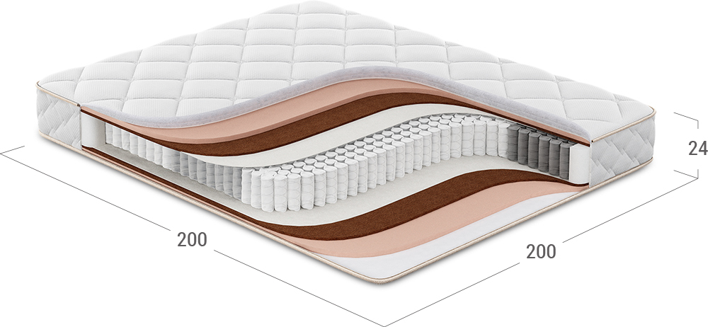 Матрас, в основу которого положен независимый пружинный блок (НПБ). Обратите внимание: чем большее количество пружин приходится на спальное место, тем точнее оказывается поддержка спины, а значит, более комфортным становится матрас и Ваш сон.