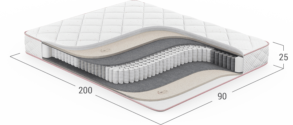 Повышает жесткость и плотность спального места, а также обеспечивает оптимальный воздухообмен благодаря объемной структуре материала. Улучшает эксплуатационные показатели матраса, не давая пружинному блоку механически воздействовать на комфортные слои.