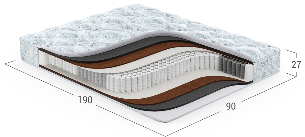 Значительно повышает жесткость спального места, обеспечивает равномерную поддержку тела во время сна. Полностью состоит из натуральных материалов. Добавляет прочности всей конструкции матраса.