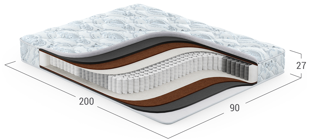 Матрас, в основу которого положен независимый пружинный блок (НПБ). Обратите внимание: чем большее количество пружин приходится на спальное место, тем точнее оказывается поддержка спины, а значит, более комфортным становится матрас и Ваш сон.