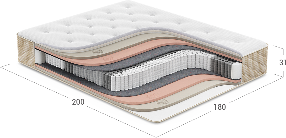 Обеспечивает естественный воздухообмен и сохраняет форму матраса. Выполнен из плотного трикотажа, простеганного на слое упругой пены и искусственного объемного волокна. Точечная стежка поддерживает превосходный уровень комфорта и не позволяет наполнителю смещаться в процессе эксплуатации.