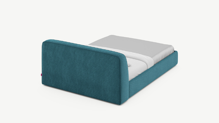 Обратная сторона изголовья, обитая тканью, позволяет ставить кровать в центре комнаты и зонировать пространство.