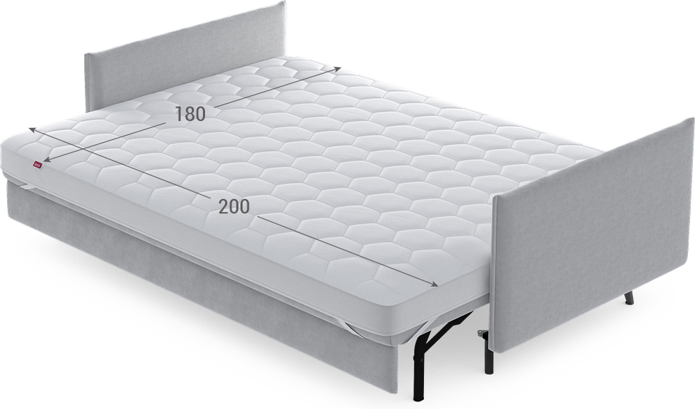 Верх чехла выполнен из прочного поликоттона с нежной сатиновой поверхностью и простеган на тонком слое воздушного волокна для дополнительной мягкости. Влагонепроницаемая пористая мембрана с внутренней стороны оберегает поверхность дивана от проникновения жидкости и загрязнений, не нарушая естественную циркуляцию воздуха на спальном месте.