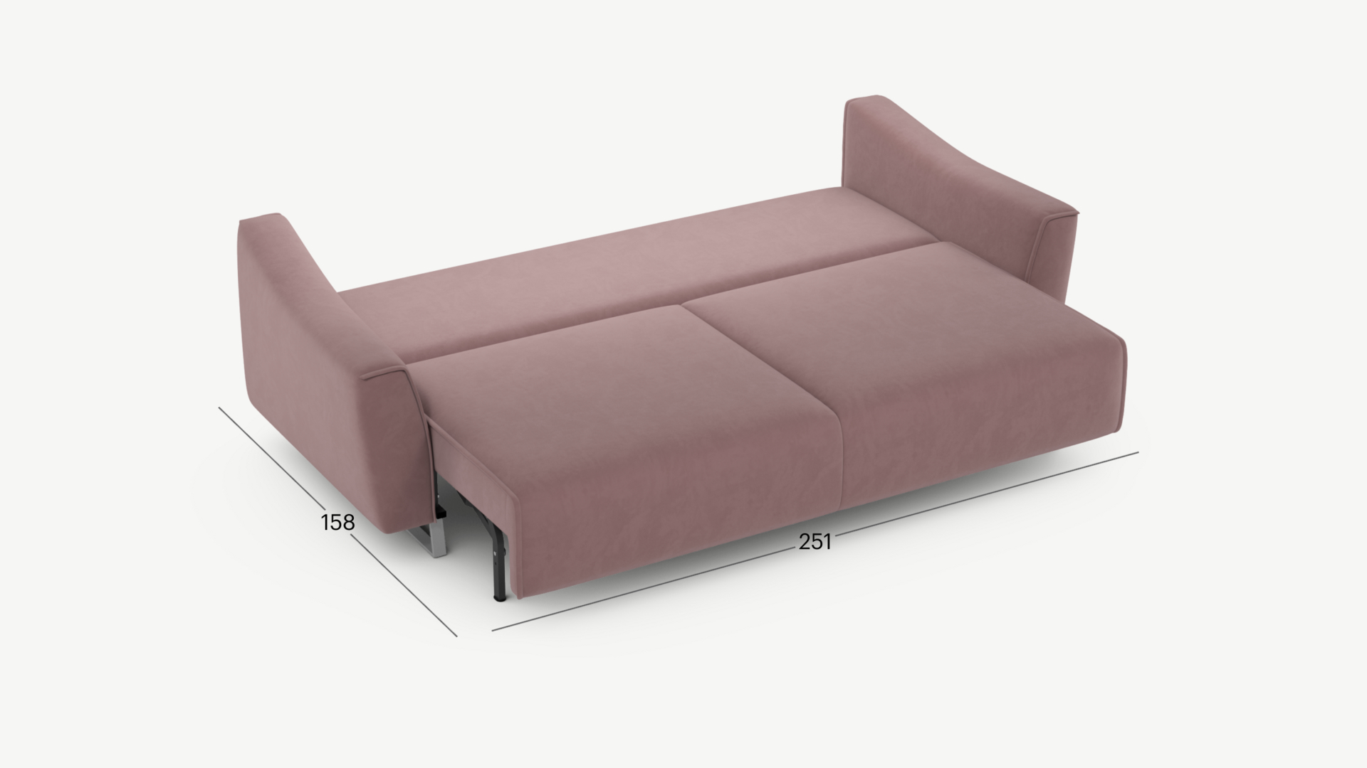 Механизм трансформации «Пантограф» подходит для ежедневного использования. Позволяет легко раскладывать и складывать диван, обеспечивая минимальный контакт дополнительных опор с напольным покрытием. Диван стоит на трапециевидных опорах, в то время как дополнительные остаются скрытыми, появляясь плавно и бесшумно в единственно нужный момент — при трансформации дивана в кровать.