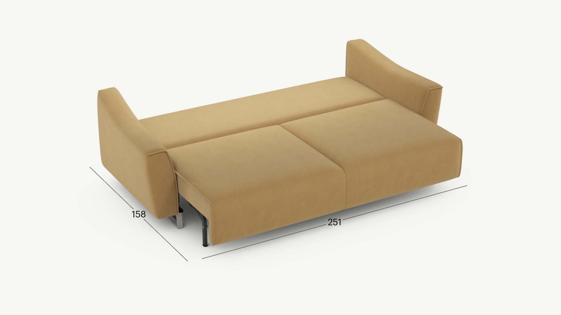 Механизм трансформации «Пантограф» подходит для ежедневного использования. Позволяет легко раскладывать и складывать диван, обеспечивая минимальный контакт дополнительных опор с напольным покрытием. Диван стоит на трапециевидных опорах, в то время как дополнительные остаются скрытыми, появляясь плавно и бесшумно в единственно нужный момент — при трансформации дивана в кровать.