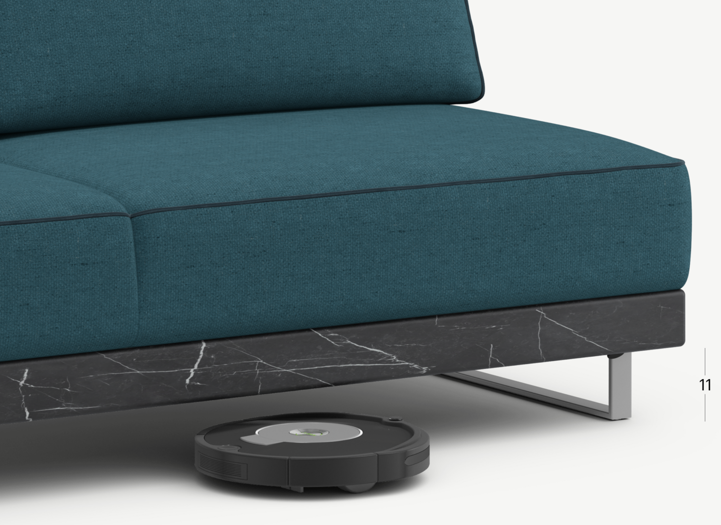 Благодаря высоким прямоугольным опорам под диваном проходит робот-пылесос и легко проводится влажная уборка, что обеспечивает чистоту и порядок в доме.