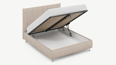• Скрытая под основанием вместительная емкость без внутренних перегородок позволяет использовать всю площадь подкроватного пространства для хранения вещей.