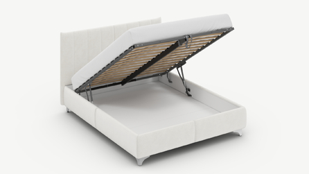 - Скрытая под основанием вместительная емкость без внутренних перегородок позволяет использовать всю площадь подкроватного пространства для хранения вещей.