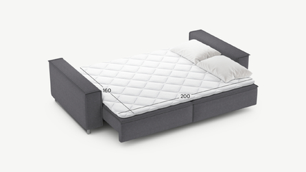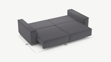 Механизм трансформации «Пантограф» подходит для ежедневного использования. Позволяет легко раскладывать и складывать диван, обеспечивая минимальный контакт дополнительных опор с напольным покрытием.