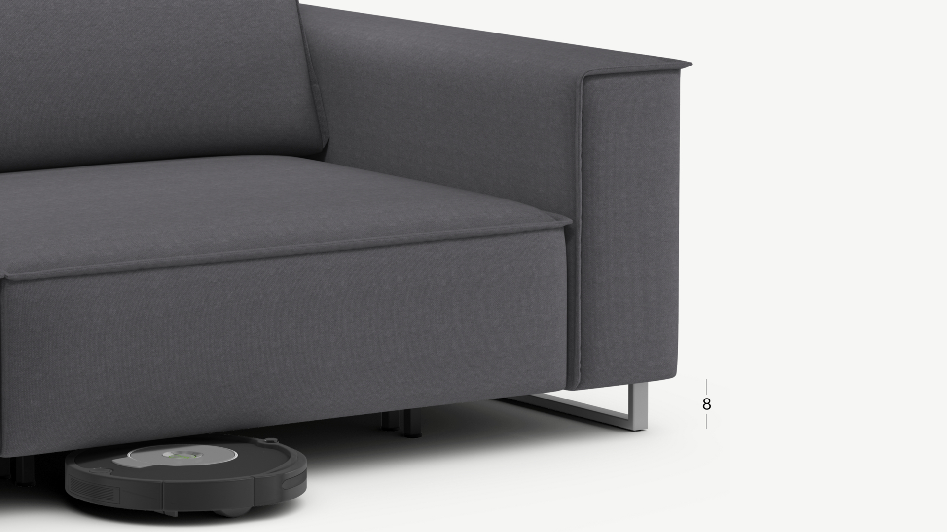 Благодаря высоким прямоугольным опорам под диваном проходит робот-пылесос и легко проводится влажная уборка, что обеспечивает чистоту и порядок в доме (при отсутствии бельевого короба под диванной секцией). Опоры представлены в четырех стандартных цветах на Ваш выбор: Графит, Серебро, Беж и Шоколад. Возможность выбора цвета позволяет создать максимально гармоничный интерьер.