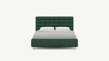 Оформите образ кровати, выбирая обивочный материал, который подчеркнет звучание Вашей спальни и отразит Ваш вкус. Обратите внимание на однотонный гладкий велюр, который усиливает объемную фактуру стежки.