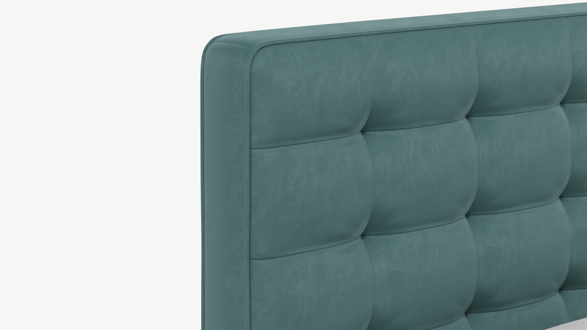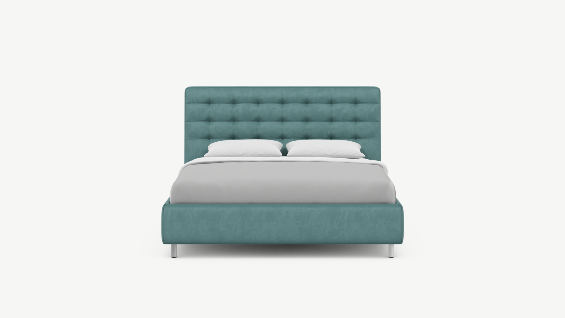 Оформите образ кровати, выбирая обивочный материал, который подчеркнет звучание Вашей спальни и отразит Ваш вкус. Обратите внимание на однотонный гладкий велюр, который усиливает объемную фактуру стежки.