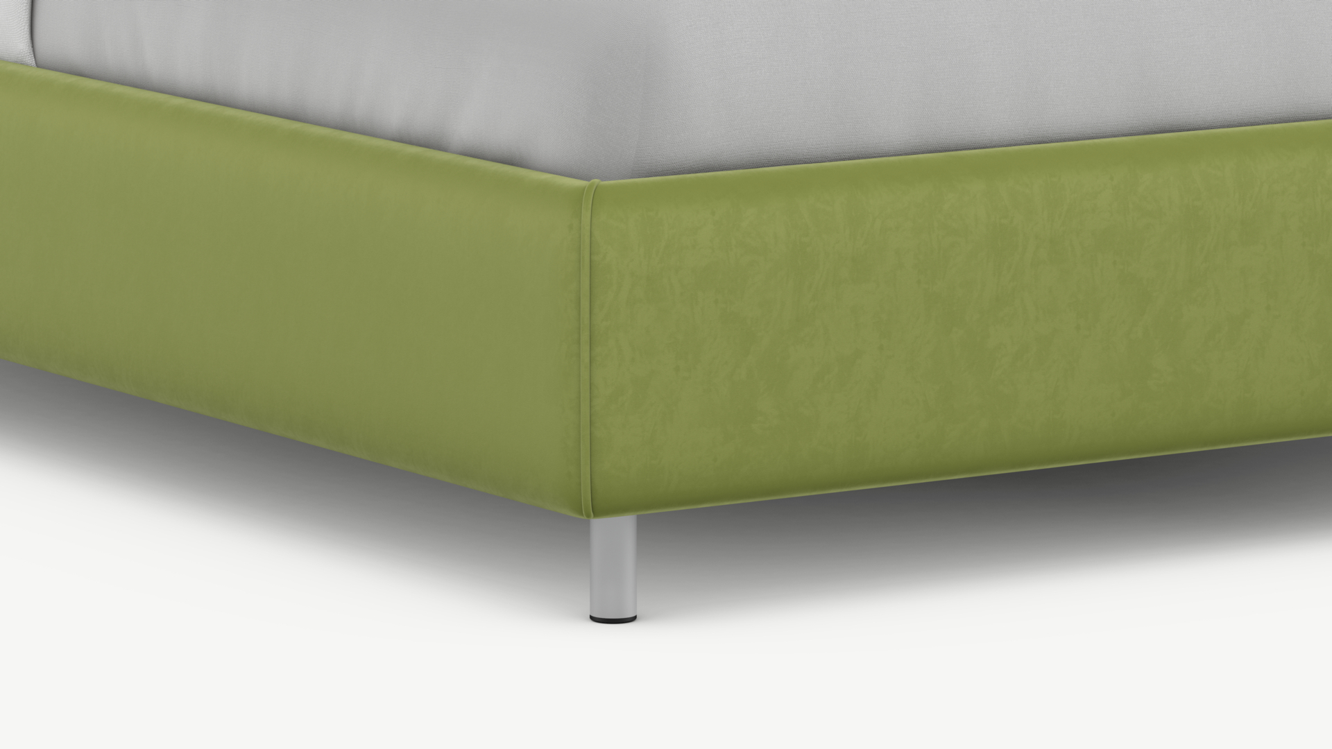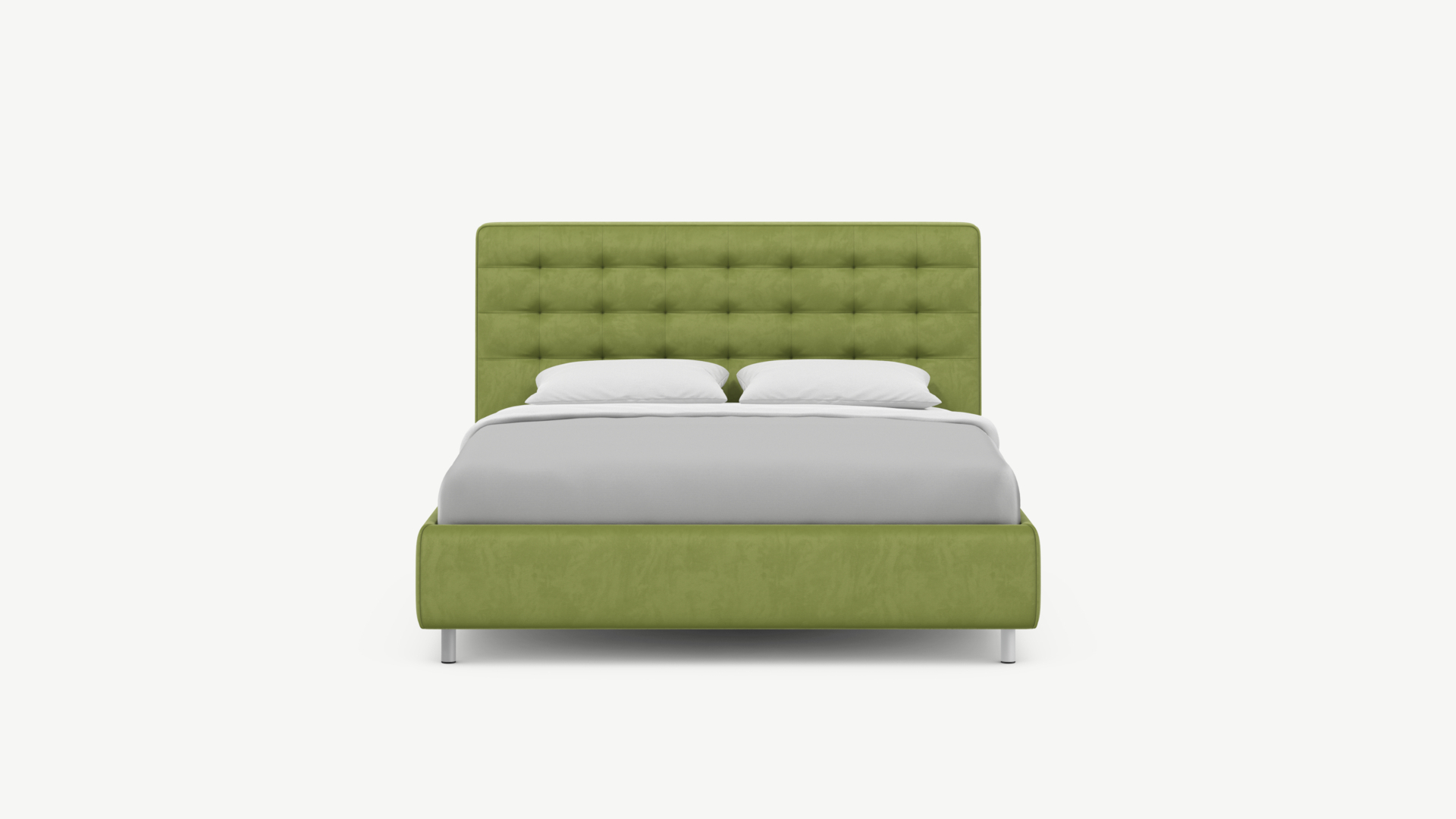 Оформите образ кровати, выбирая обивочный материал, который подчеркнет звучание Вашей спальни и отразит Ваш вкус. Обратите внимание на однотонный гладкий велюр, который усиливает объемную фактуру стежки.