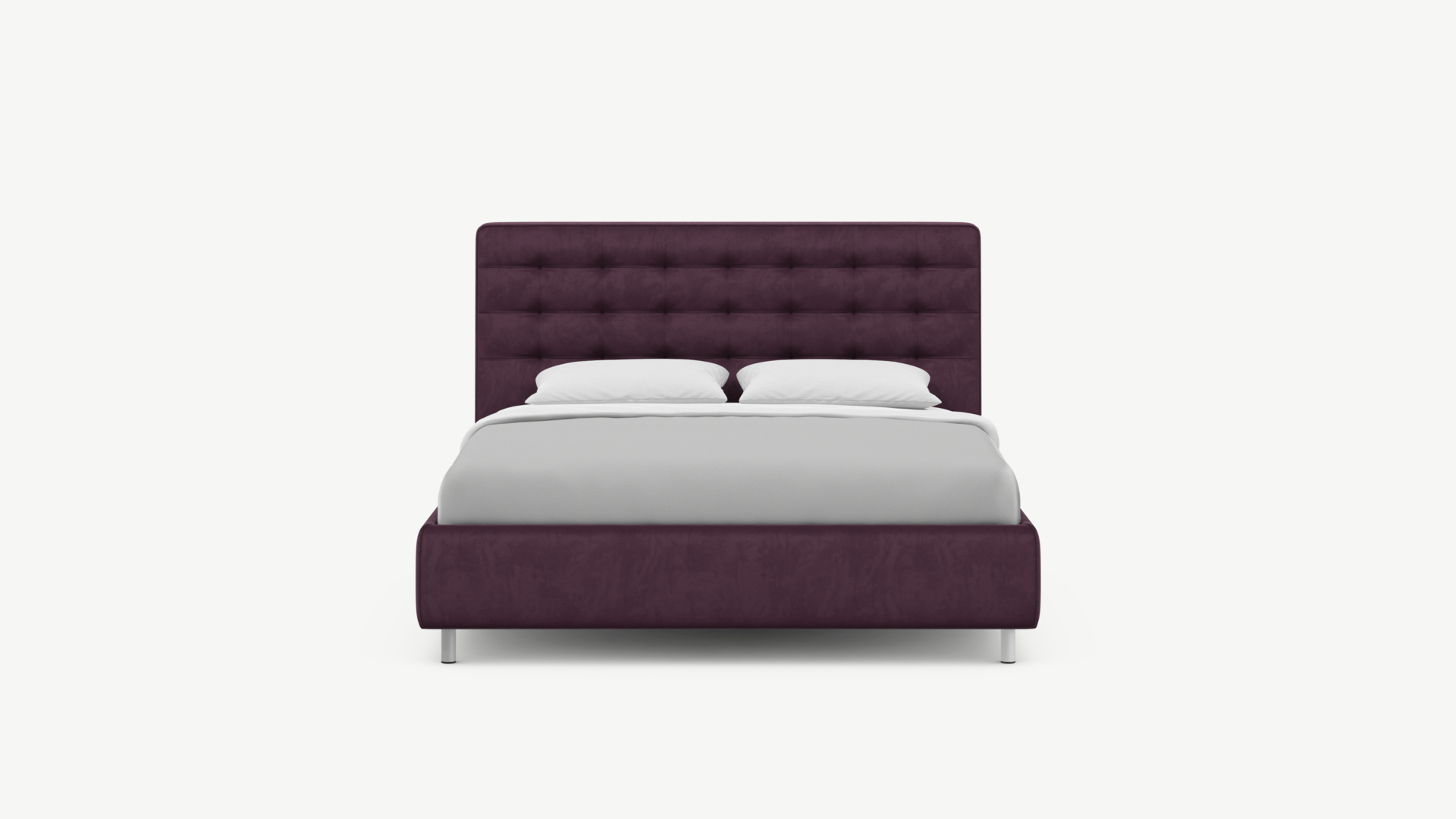 Оформите образ кровати, выбирая обивочный материал, который подчеркнет звучание Вашей спальни и отразит Ваш вкус. Обратите внимание на однотонный гладкий велюр, который усиливает объемную фактуру стежки.