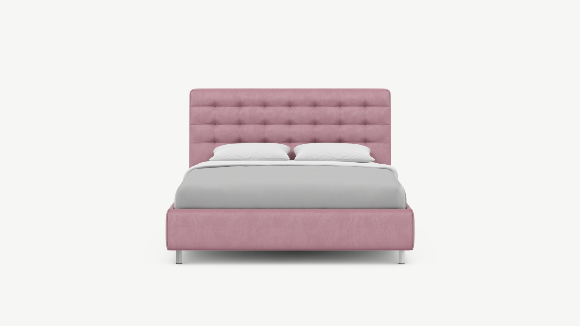 Оформите образ кровати, выбирая обивочный материал, который подчеркнет звучание Вашей спальни и отразит Ваш вкус. Обратите внимание на однотонный гладкий велюр, который усиливает объемную фактуру стежки.