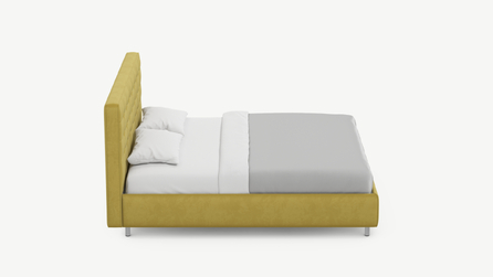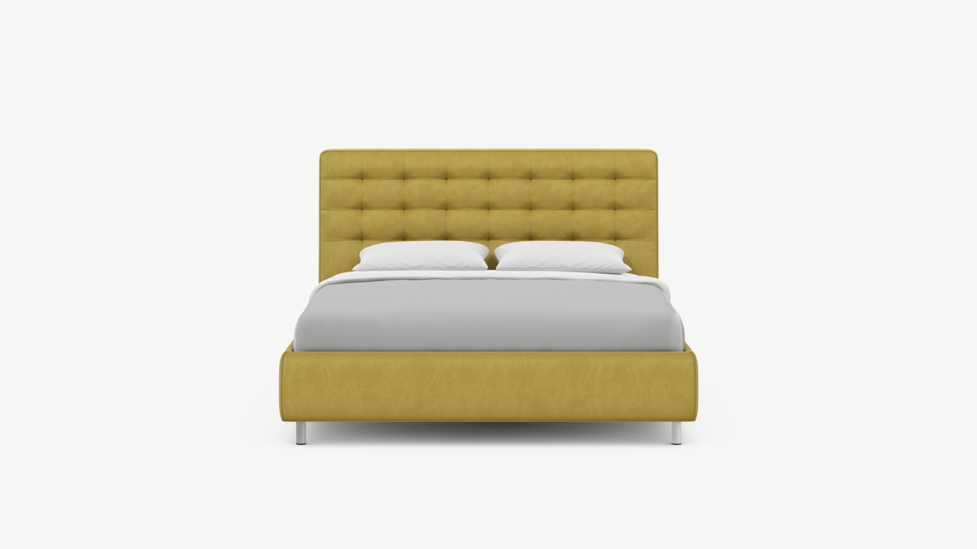Оформите образ кровати, выбирая обивочный материал, который подчеркнет звучание Вашей спальни и отразит Ваш вкус. Обратите внимание на однотонный гладкий велюр, который усиливает объемную фактуру стежки.
