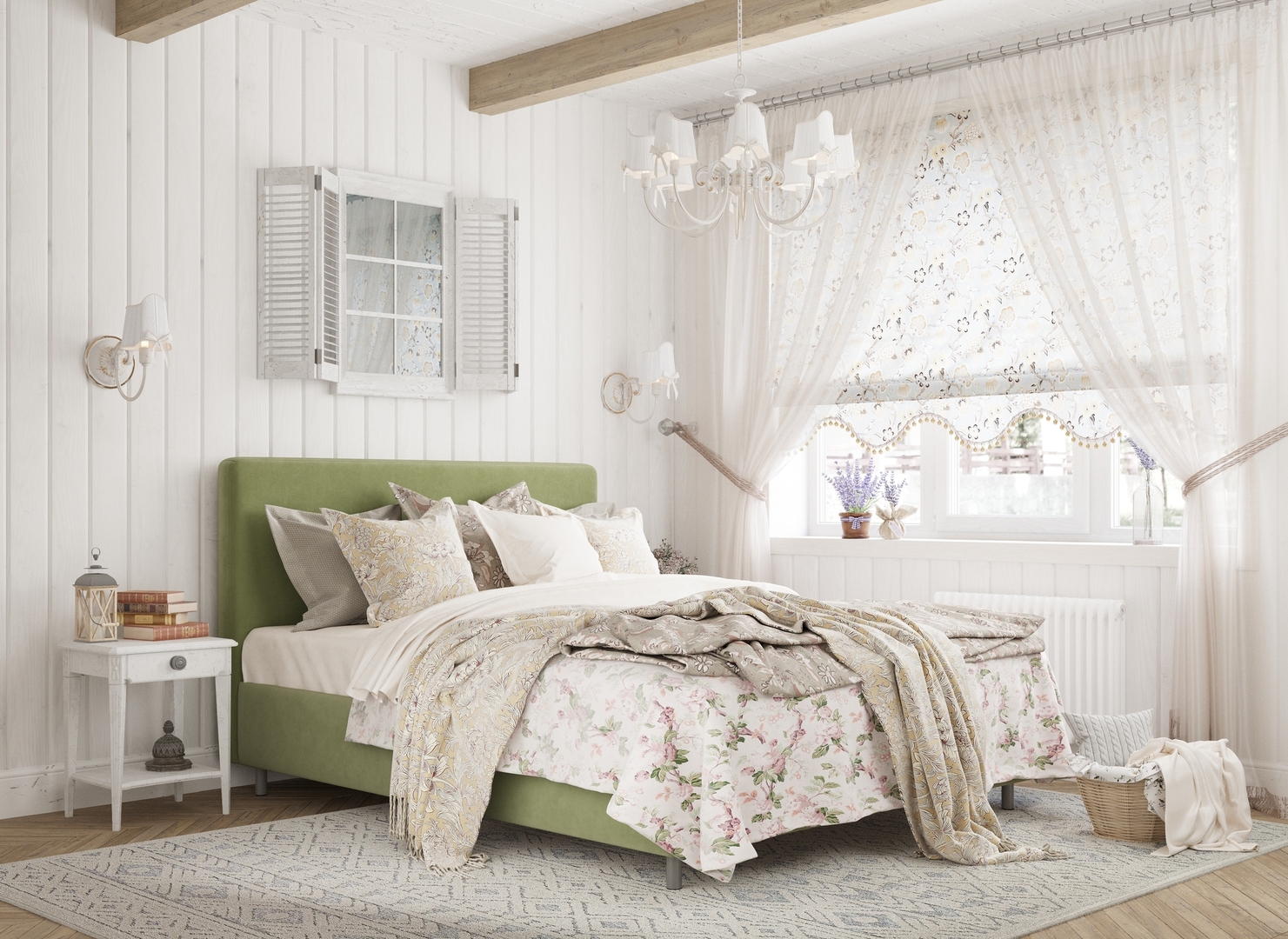 Творческий подход к выбору обивочного материала меняет образ дизайна. Велюр за счет своей бархатистой фактуры привносит в пространство шика и утонченности. Шенилл дополняет оформление спальни природными текстурами, создавая атмосферу тепла и уюта.