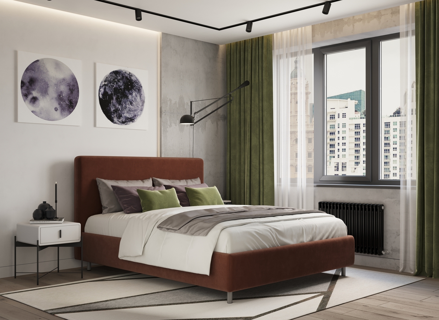 Творческий подход к выбору обивочного материала меняет образ дизайна. Велюр за счет своей бархатистой фактуры привносит в пространство шика и утонченности. Шенилл дополняет оформление спальни природными текстурами, создавая атмосферу тепла и уюта.