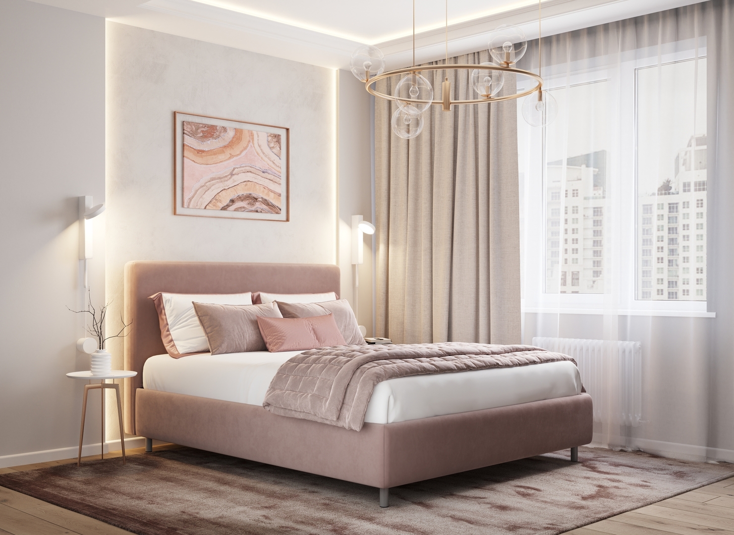 Творческий подход к выбору обивочного материала меняет образ дизайна. Велюр за счет своей бархатистой фактуры привносит в пространство шика и утонченности. Шенилл дополняет оформление спальни природными текстурами, создавая атмосферу тепла и уюта.