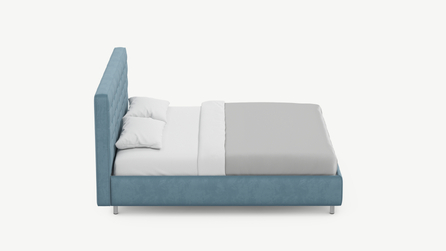 Заказали кровать с подушками-валиками, очень необычный дизайн нам показался. Выбрали высокие опоры для удобства в уборке, а изголовье не стали брать высокое, больше понравился низкий вариант. Приятно, что в магазине большой выбор тканей и цветов. Мы выбрали яркий бирюзовой, в нашей комнате кровать выглядит просто потрясающе! Кровать стала ярким акцентом. Это очень круто, что компания дает возможность сделать интерьер таким, как хочется. По качеству также нет претензий. Обита ровно, ни складок не, ни неровностей. Ламели ровные, матрас на них лежит идеально. Мы остались довольны, всем рекомендуем к покупке.