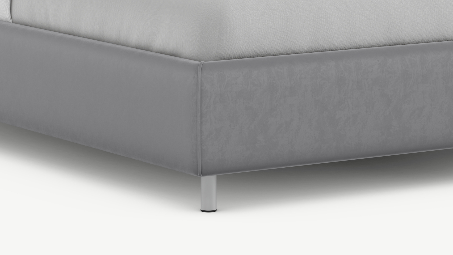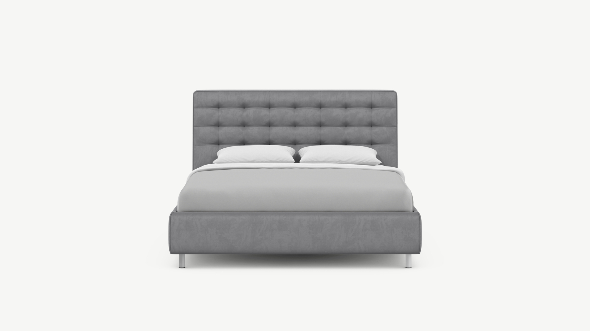 Оформите образ кровати, выбирая обивочный материал, который подчеркнет звучание Вашей спальни и отразит Ваш вкус. Обратите внимание на однотонный гладкий велюр, который усиливает объемную фактуру стежки.